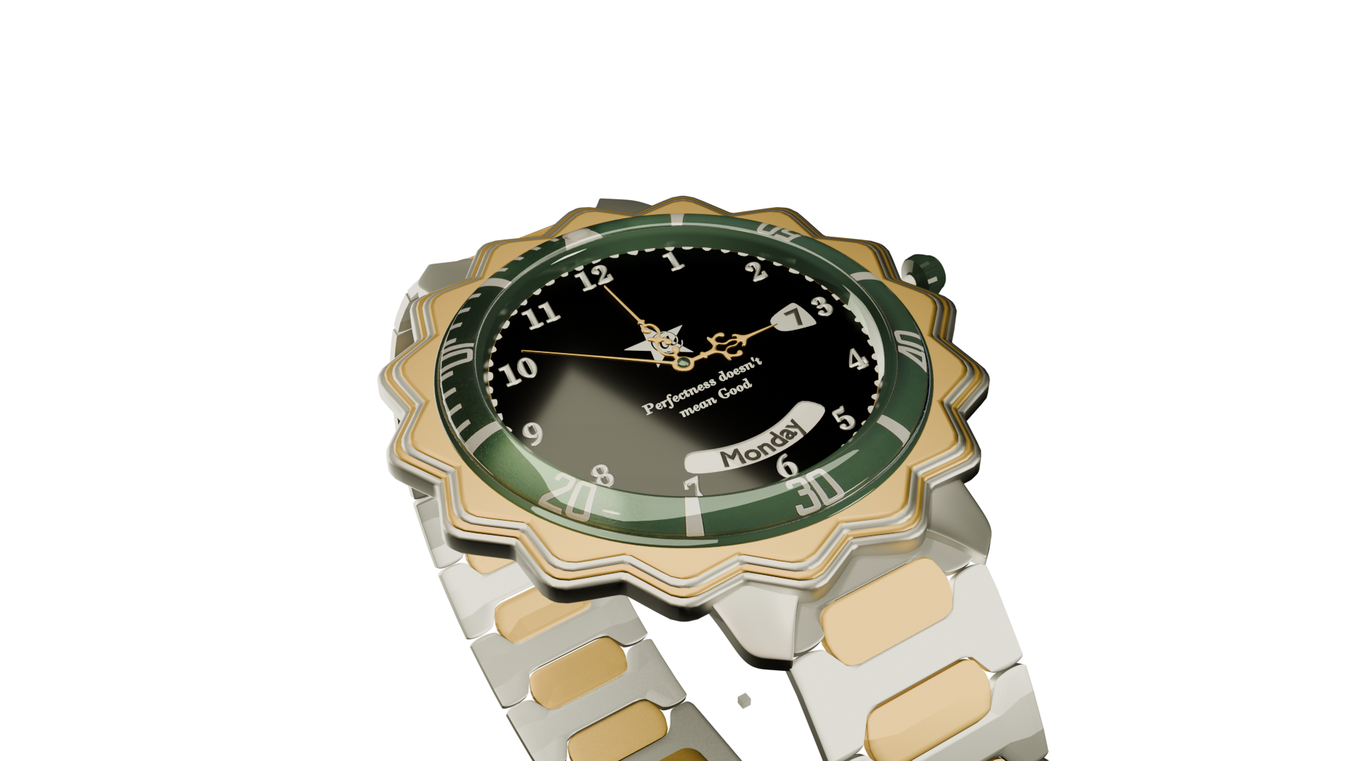 Day-Date: Saat 6 yönünde haftanın gününü gösteren geniş kavisli pencere.