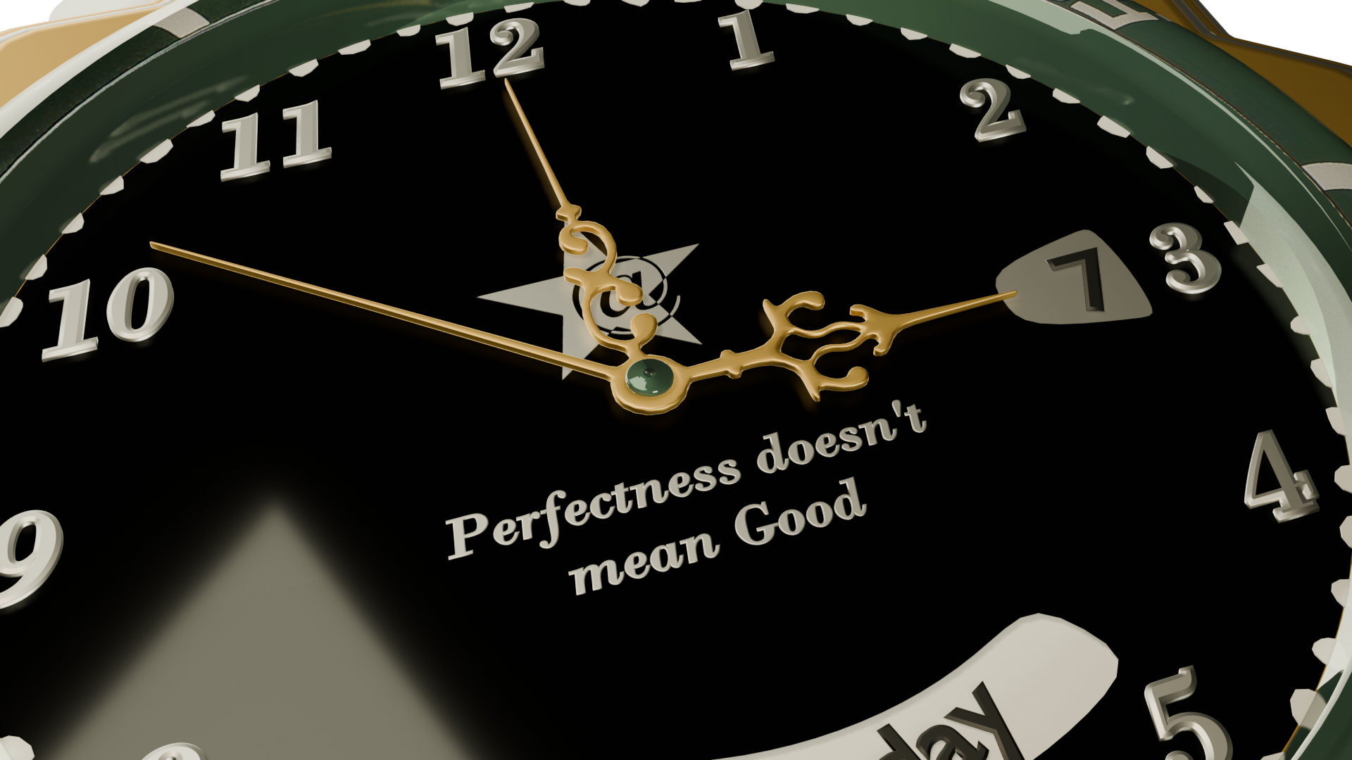 Kadran: Derin okyanus siyahı ve yeşil geçişli "Sunray" efektli zemin.